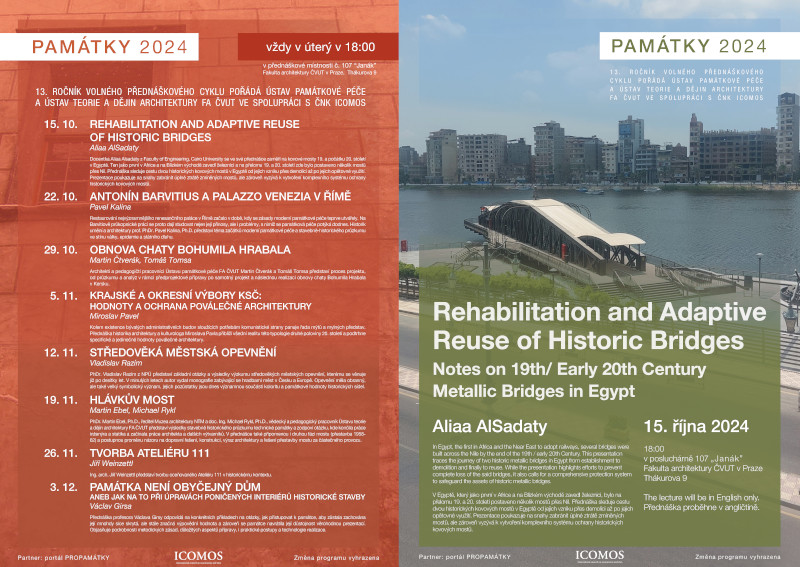 Dovolte nám, abychom Vás opět pozvali na volný přednáškový cyklus Památky 2024, pořádaný ÚPP FA…