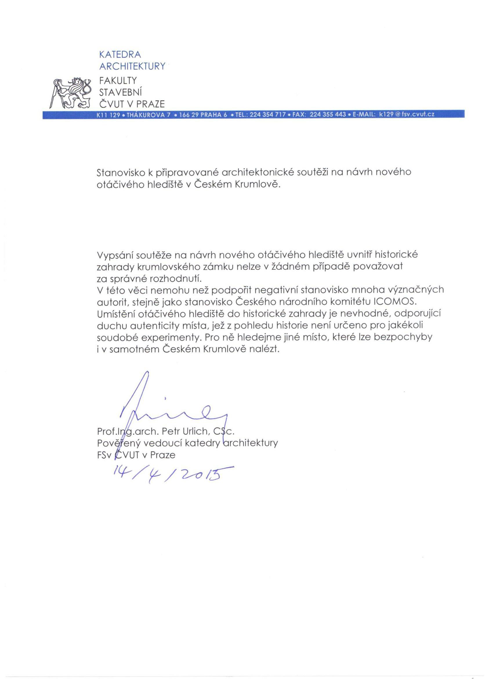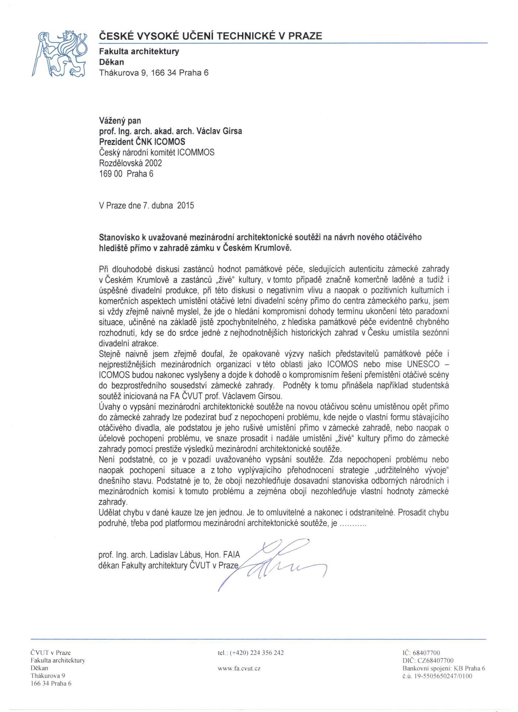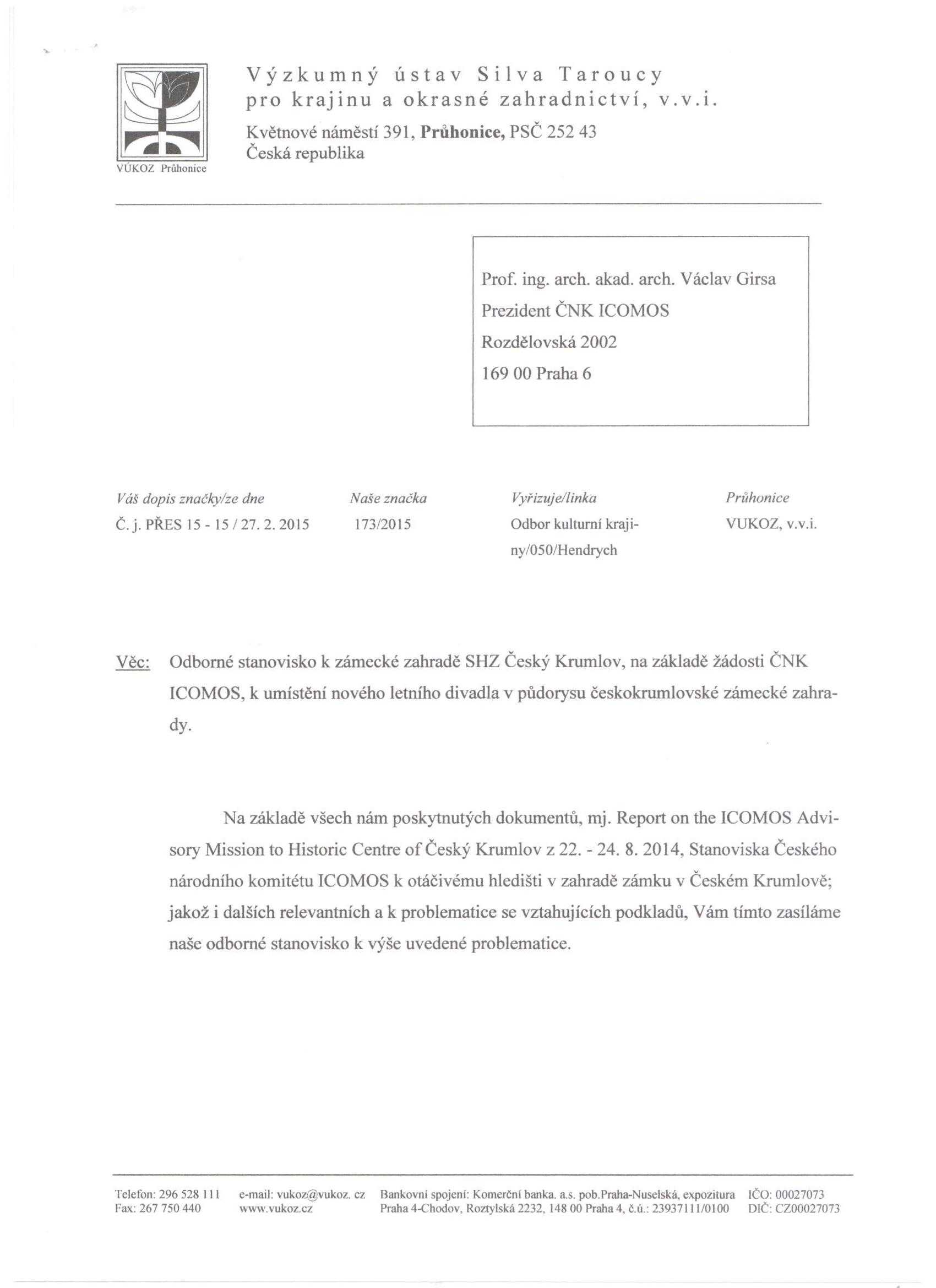 Řešení s umístěním nové letní scény v půdorysu unikátní českokrumlovské zahrady je zcela nepřijatelnou alternativou nejen pro odborníky památkové péče a znalce krajinářské a zahradní tvorby, ale též pro uznávané kapacity evropského formátu v oblasti architektonické tvorby, významná pedagogická a vědecká pracoviště.