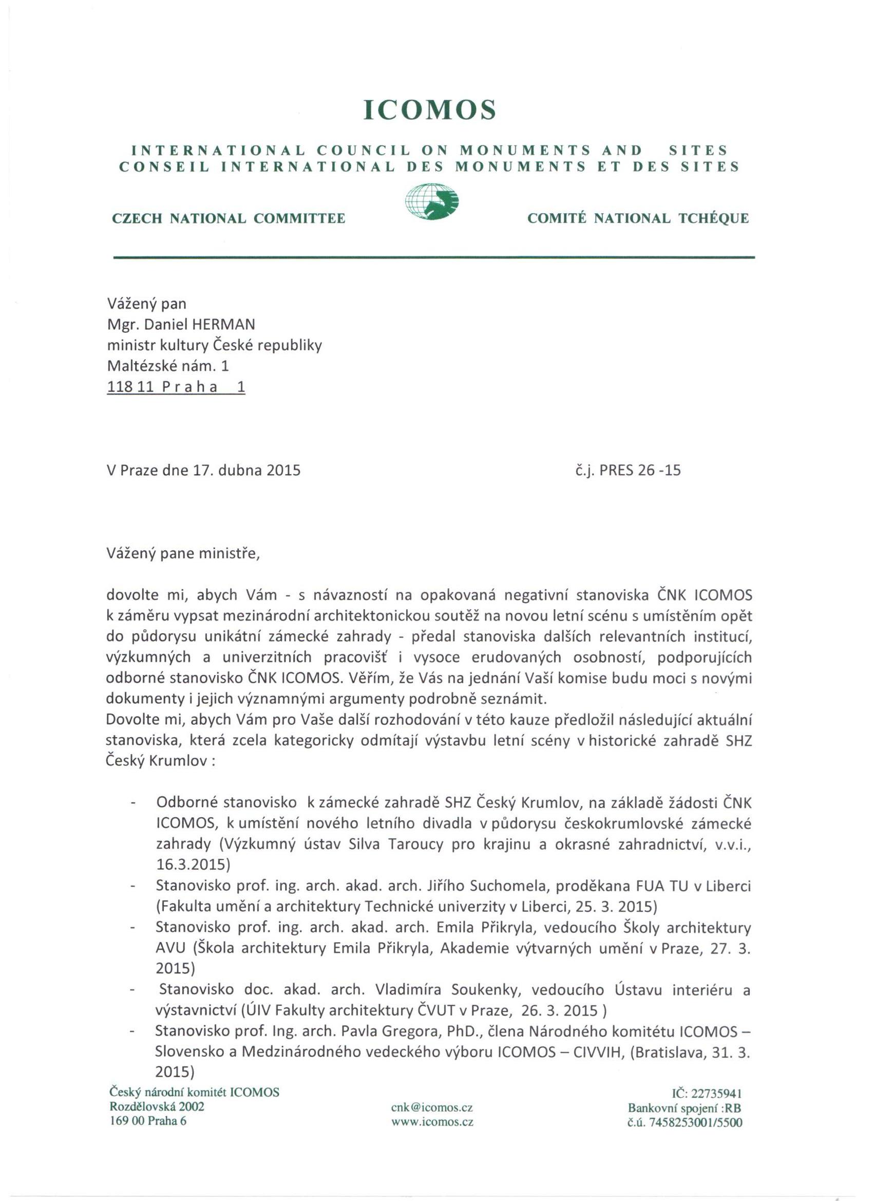 Ke stanovisku ČNK ICOMOS se připojily další instituce a osobnosti