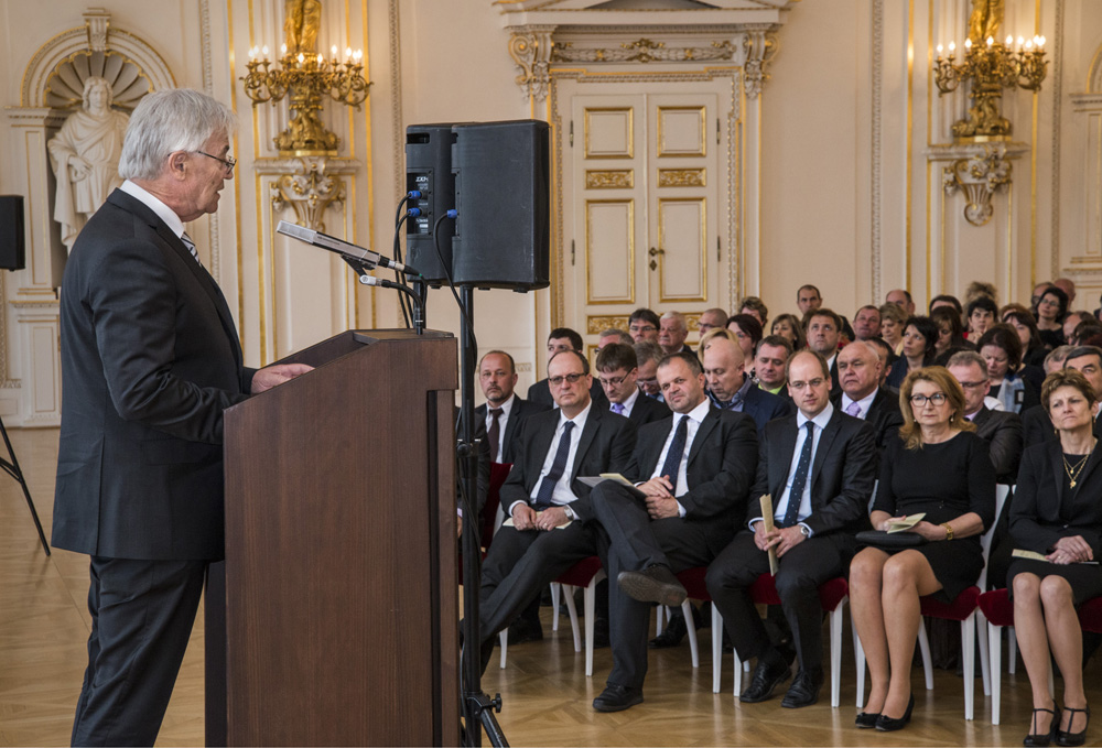 Nechci zde kazit sváteční atmosféru a připomínat další negativní či znepokojující jevy dnešní doby. Ale nejsme v době před třiceti lety, kdy se oslavami s nekritickým zdůrazňováním úspěchů zakrývaly skutečné problémy. Situace je natolik vážná, že i slavnostní ceremoniál a tyto vzácné stěny jistě snesou pár minut otevřené kritiky. O to více, že se jedná o zcela výjimečné setkání tolika významných osobností, představitelů ministerstev i měst a obcí, které usilují o stejnou věc.