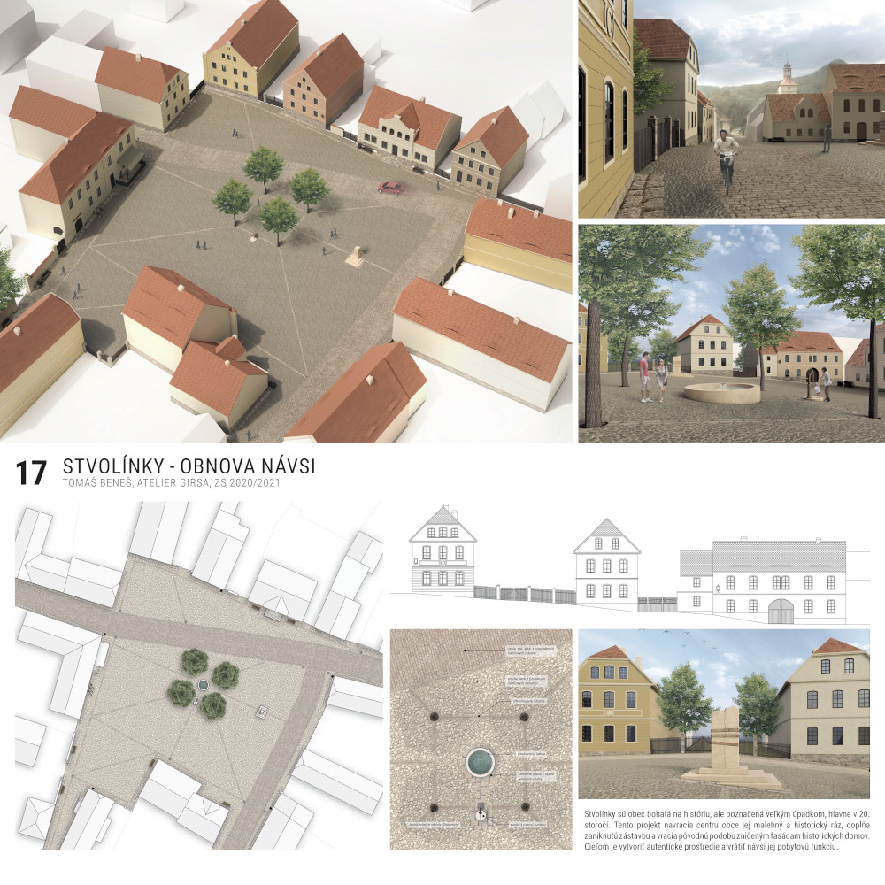 1. cena: Tomáš Beneš (č. 17) ateliér prof. Václava Girsy, Obnova návsi ve Stvolínkách
