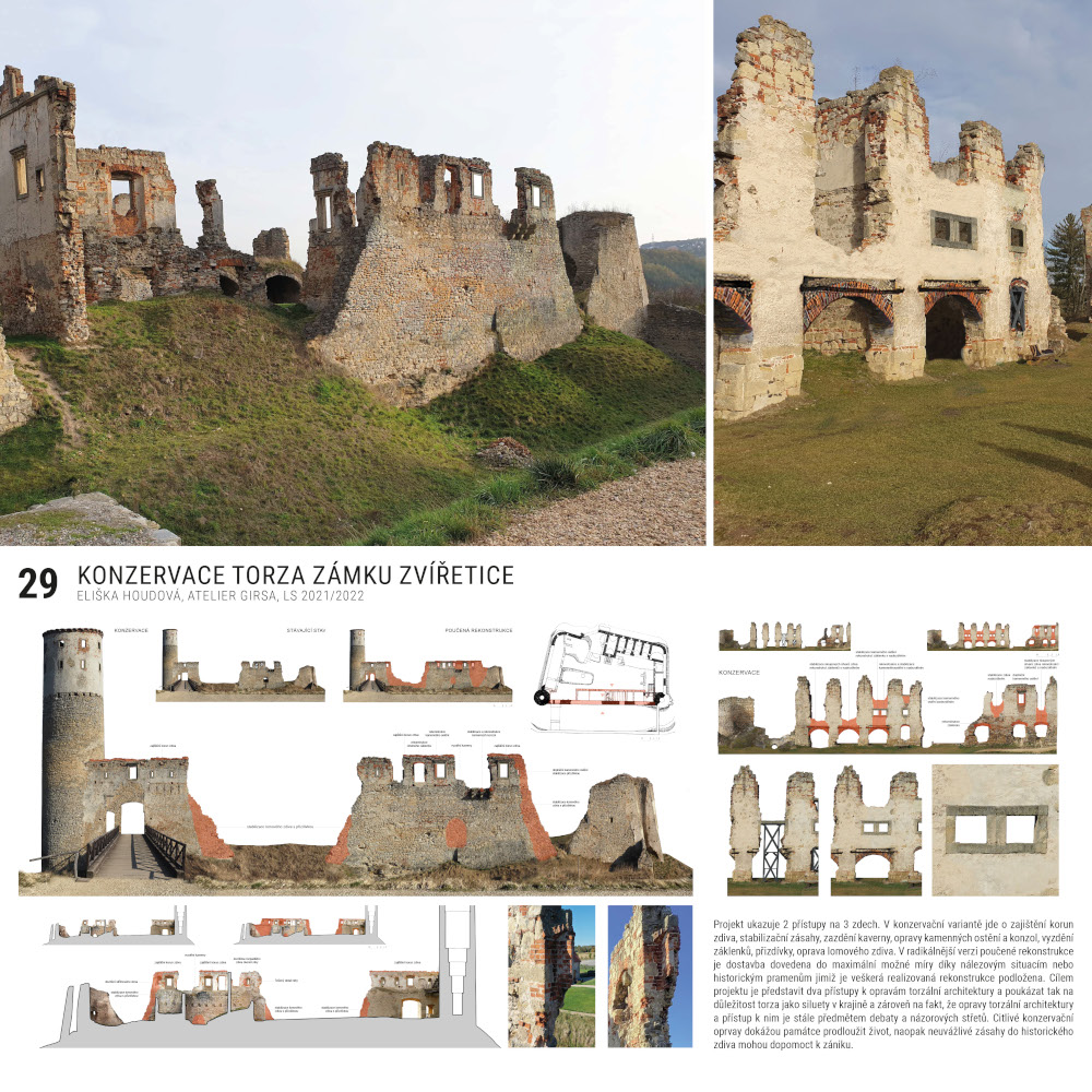 1. cena: Eliška Houdová (č. 29) ateliér prof. Václava Girsy, Konzervace torza zámku Zvířetice