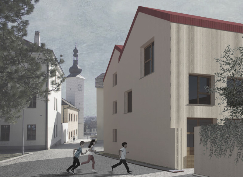 Na třetím místě se umístil projekt Veroniky Cirmonové. Ten zpracovala na novostavbu domu dětí a mládeže, která by zaplnila proluku městské památkové zóny v Dačicích. Budova je řešena moderně a jako bezbariérová. U fasád bylo cílem pomocí drásané omítky moderní stavbu začlenit do dané části města, které se nachází v historickém centru u náměstí.