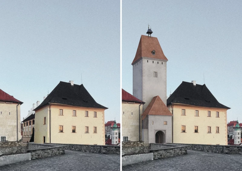Druhé místo získal soubor čtyř ateliérových prací, které navrhují obnovu zaniklých historických městských bran Českého Krumlova. Kateřina Veselá se zaměřila na gotickou vnitřní bránu v Radniční ulici, Vojtěch Cuhra na vnitřní Kájovskou bránu, Martin Kovařík Latránskou bránu a Radim Fiala na Horní bránu. „Projekty věrně zasazují původní brány do míst, kde se nacházely. Zajímavostí bylo, že ačkoliv studenti mohli vycházet z výkresů se zaměřením pořízených před zbouráním bran, ukázaly se jako nepřesné. Při přípravě projektů obnov museli detaily a rozměry korigovat i na základě hypotéz vyvozených z podobných staveb. Minimálně Horní bránu by bylo vhodné a poměrně realistické obnovit i ve skutečnosti, velmi by prospěla pohledovému charakteru Horní ulice,“ dodal Girsa.