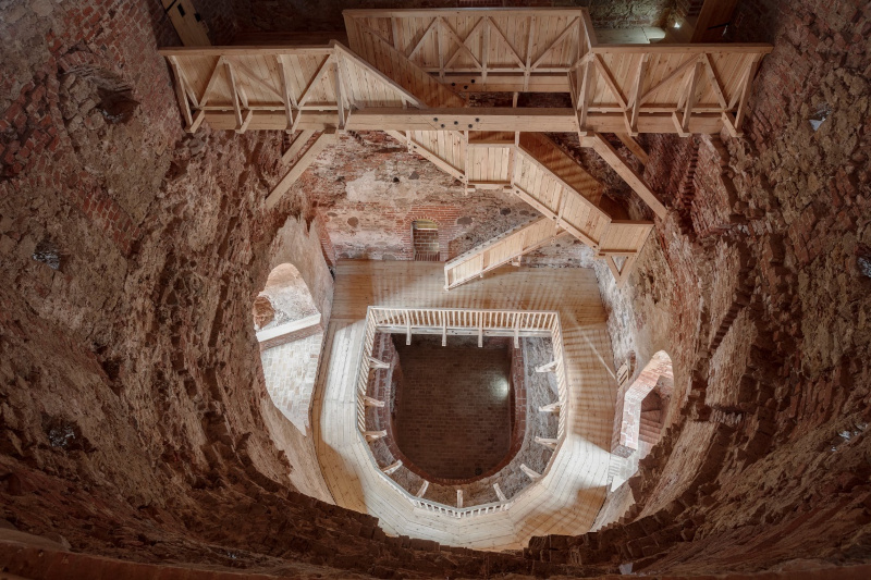 Tato část projektu byla zaměřena na konzervaci a restaurování velké a malé věže starého hradu z 15. století. Hrad byl koncem 17. století poničen za švédských válek a během Severní války s Ruskem v roce 1705 pak devastován ještě více. Následná éra Sovětského svazu se na něm podepsala necitlivými opravami a dostavbami. V posledním čtvrtstoletí, i na základě česko-lotyšské dohody o spolupráci v oblasti kultury z roku 1999 se mu za pomoci českých odborníků vrací bývalá sláva a důstojnost.